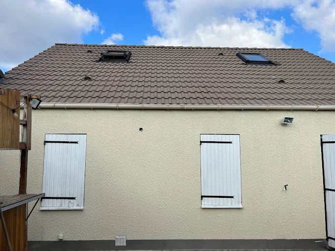 Rénovation complète d'une toiture datant des années 1970, suivant les normes actuelles (chevrons, linteaux, isolation, bâche d'étanchéité), achevée mi-2021. Ca respire la solidité. Mise en oeuvre d'importants moyens (camion-grue, bennes à ordures, élévateurs...) à hauteur de l'enjeu.